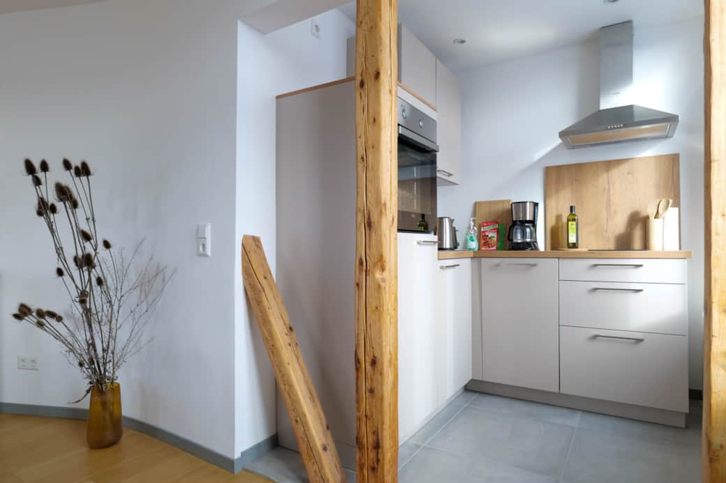 Kinderhochstuhl, Kaffeemaschine, Küchenausstattung, Spülmaschine, Küchenherd, Backofen, Kühlschrank, Gewürze, Toaster