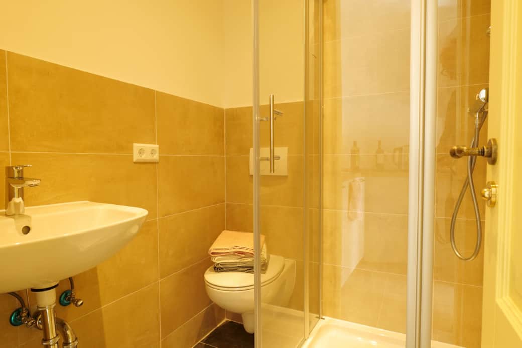 Die Wohnung verfügt über 1 Schlafzimmer mit Doppelbett. Das Bad ist mit Dusche und WC ausgestattet.